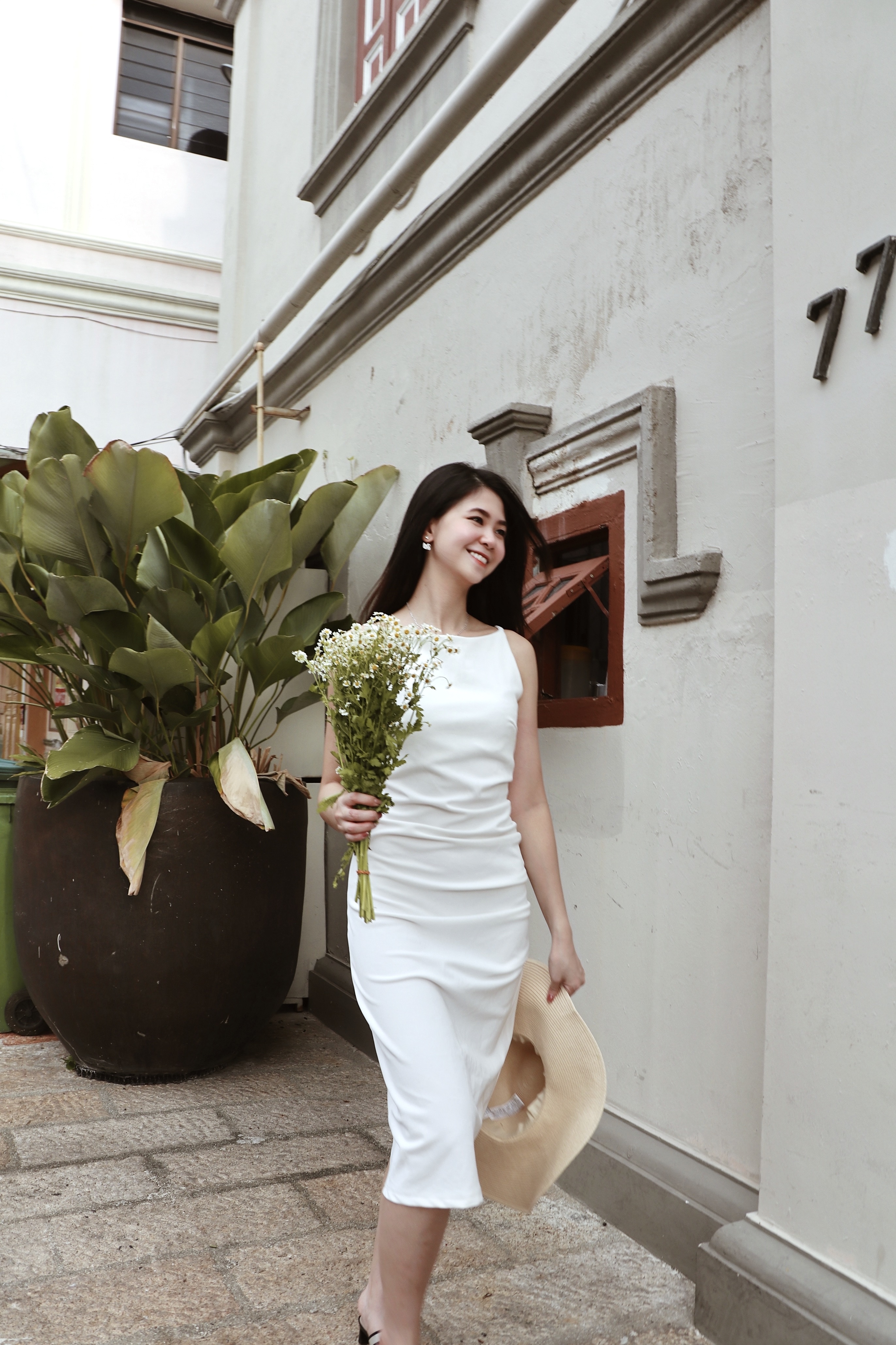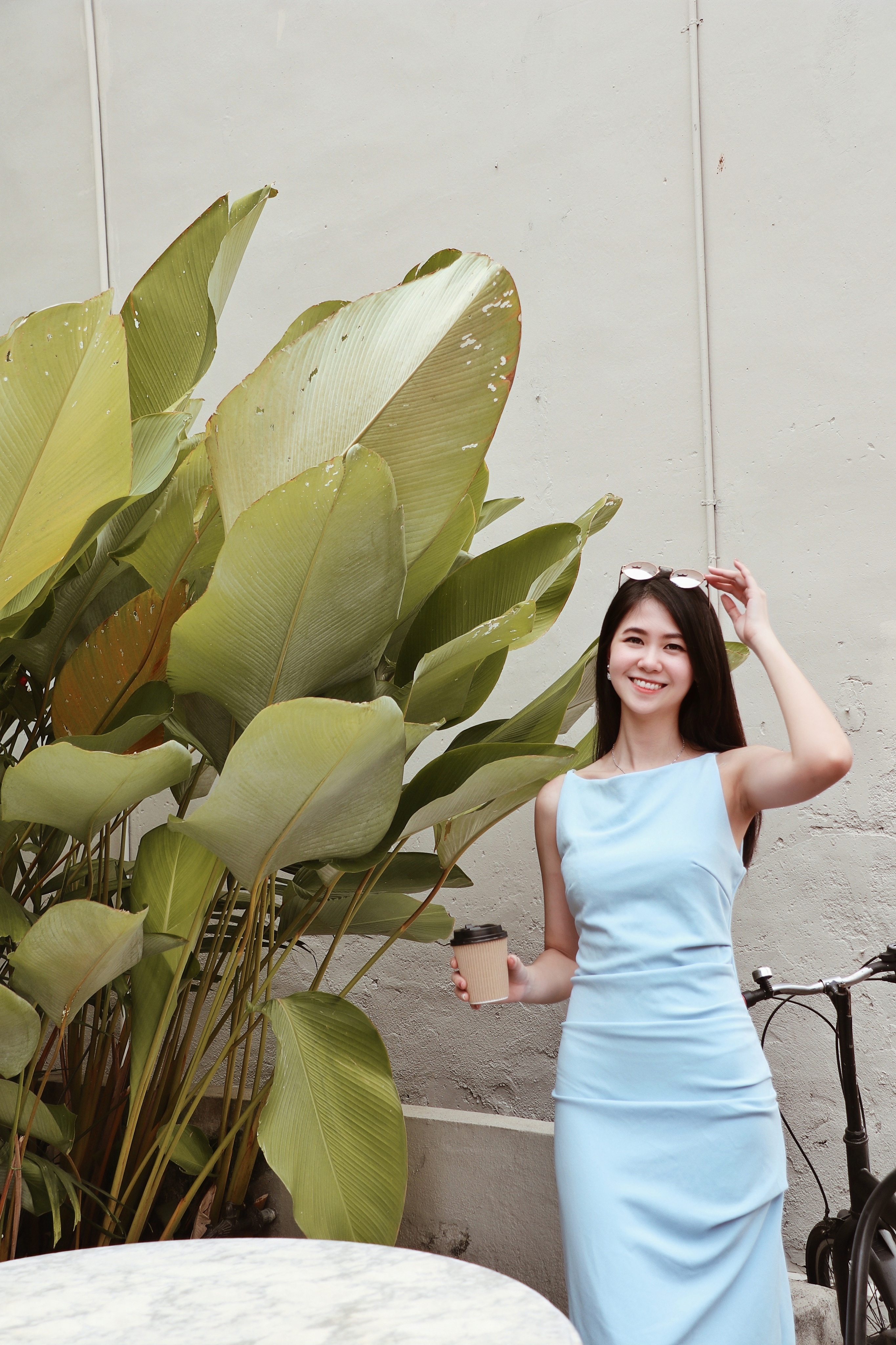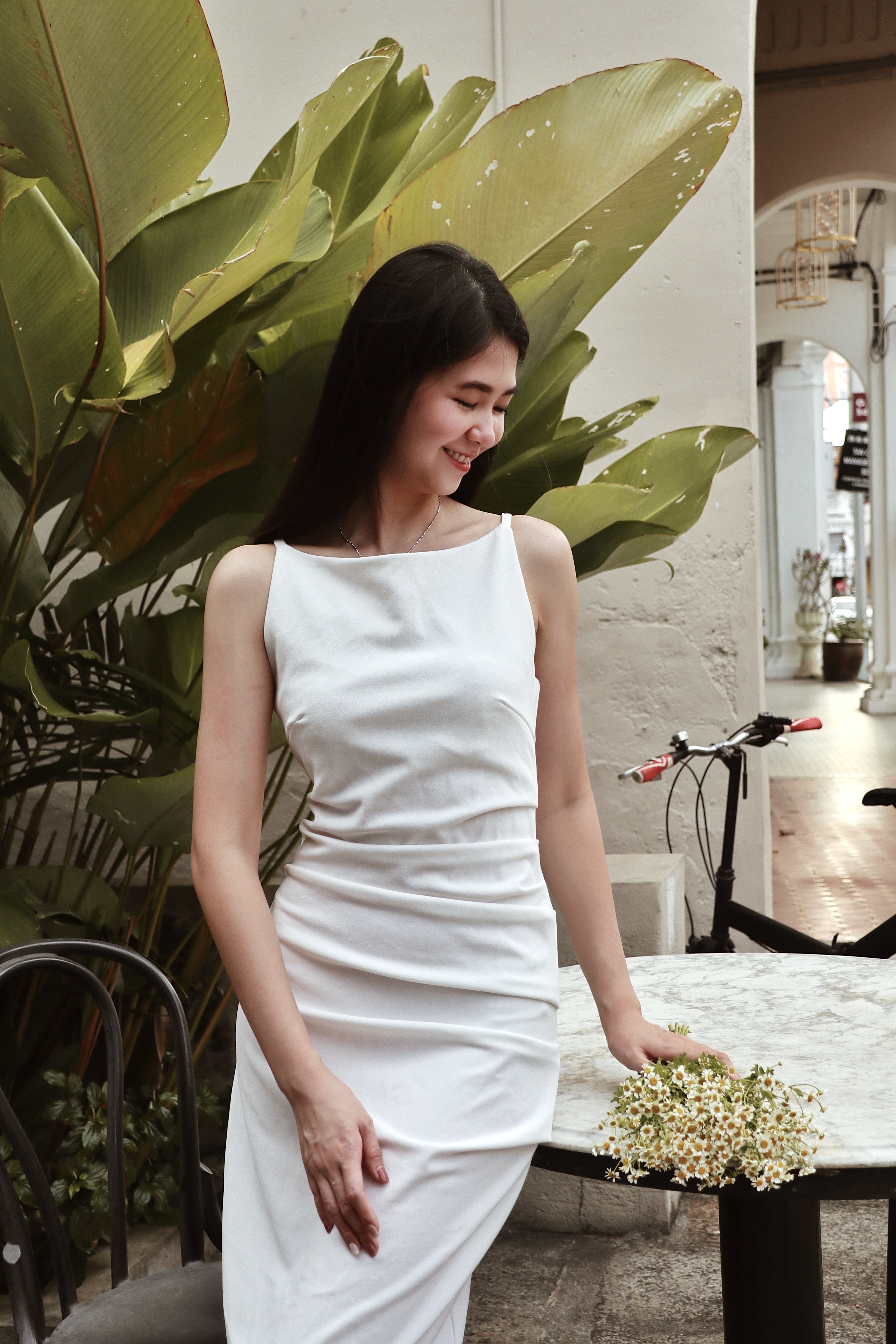 Details: The knee-length dress, with its minimalist design, embodies ultimate elegance and grace. Its simplicity, free from unnecessary embellishments, radiates a sense of luxury and modern sophistication. The cinched waistline subtly highlights a slim figure, while the sleeveless thin straps gracefully reveal the collarbone, adding a hint of sensuality and freshness. The softly rounded neckline offers both comfort and understated charm, enhancing the overall refinement. Available in classic white and elegant blue, the white exudes purity and freshness, while the blue conveys calmness and sophistication, with each color lending its own unique allure. The overall look is both sleek and feminine, suitable for any occasion, showcasing a simple yet undeniably luxurious sense of style.