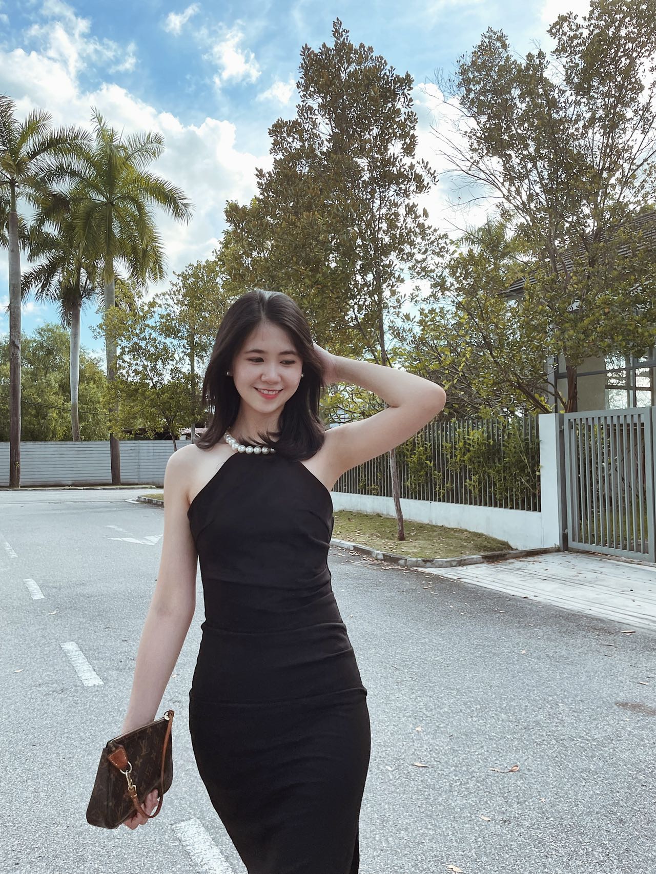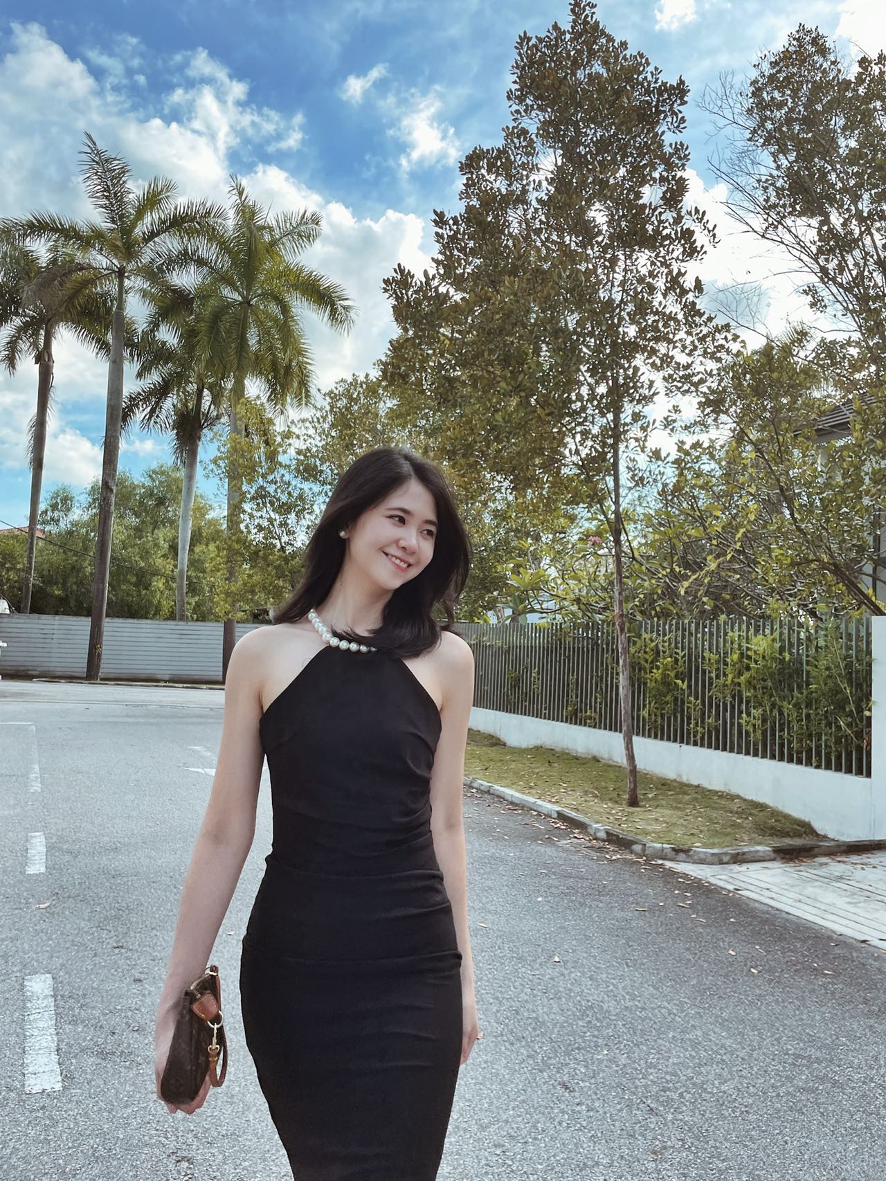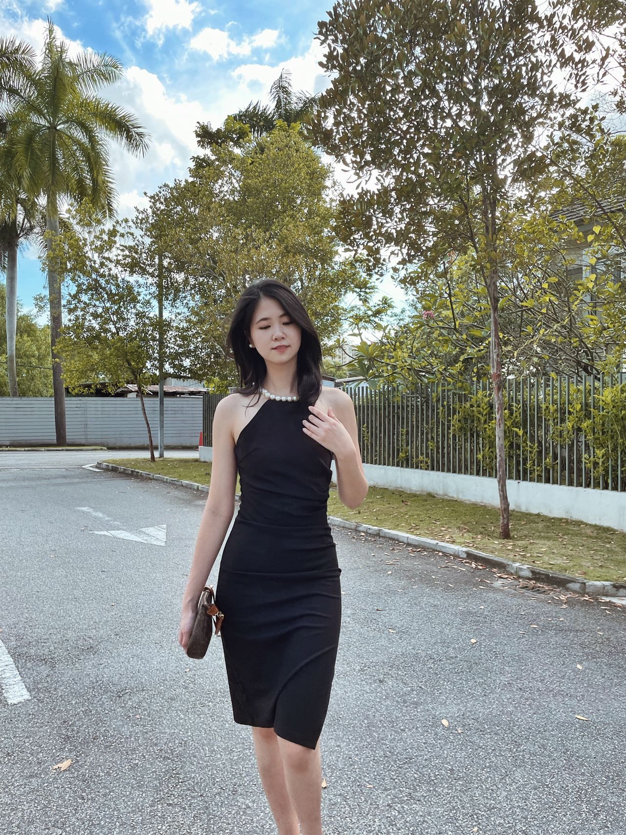 Details: This figure-flaunting black midi dress is perfect for a cocktail party or formal event. Shiny faux pearls encrusted the halter neck gives this little dress a touch of glamour and elegance, while the stretchable fabric with fitted bodycon style ensure you’ll look sexy and chic.