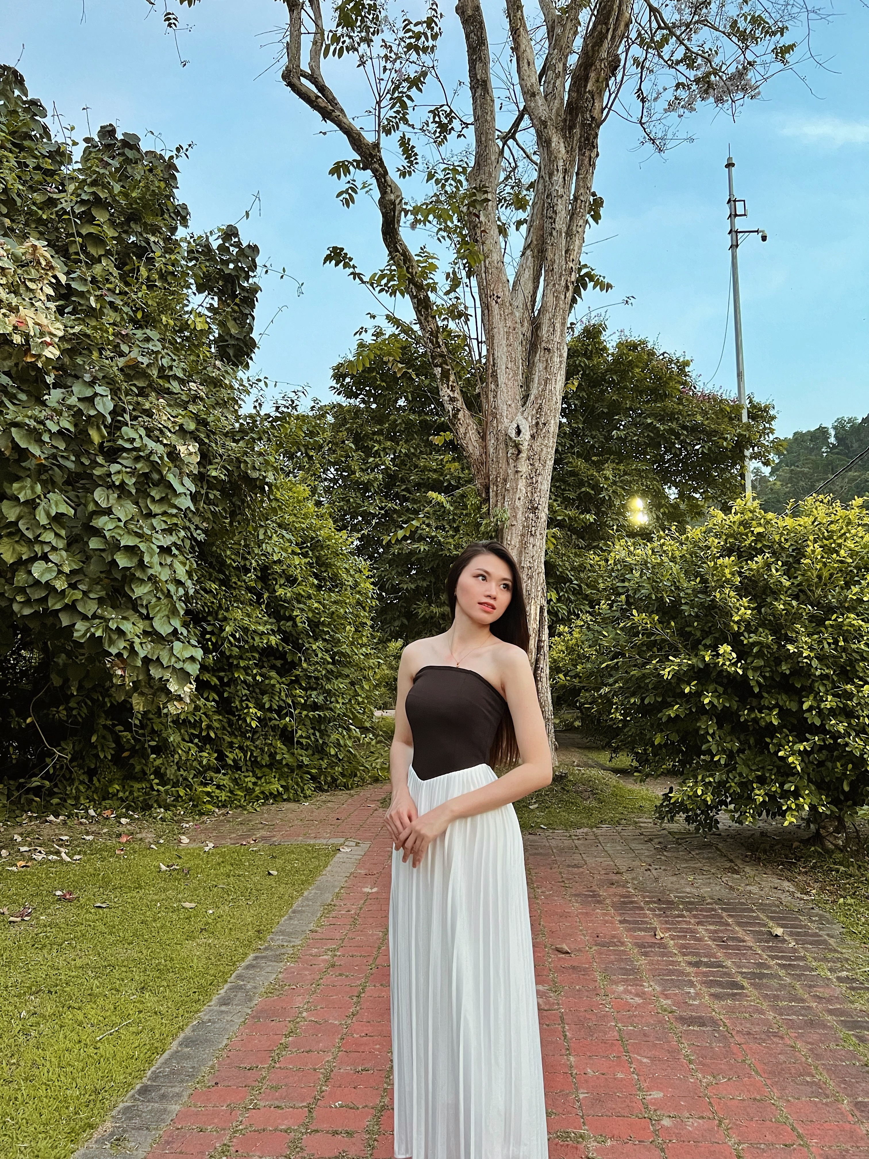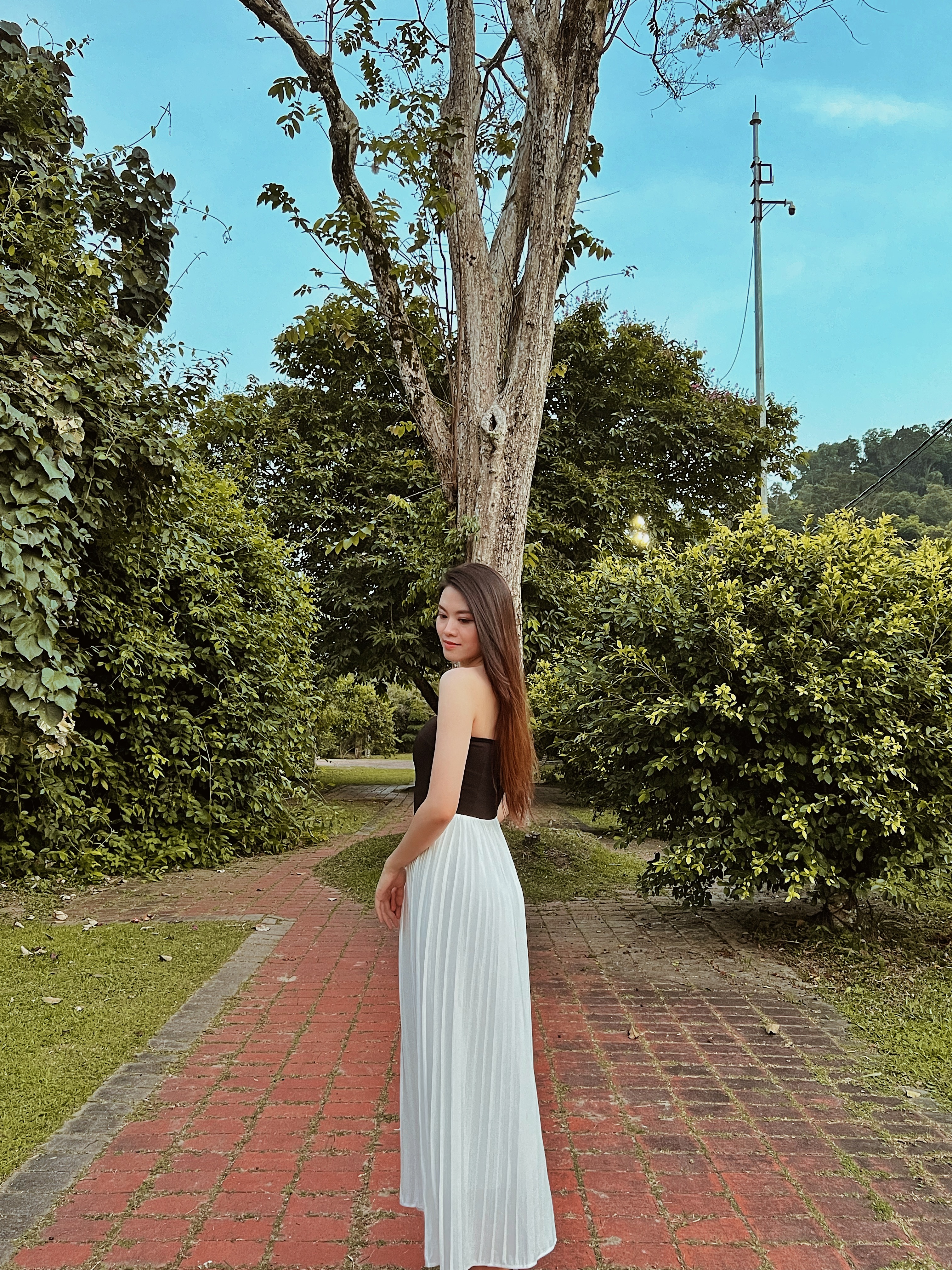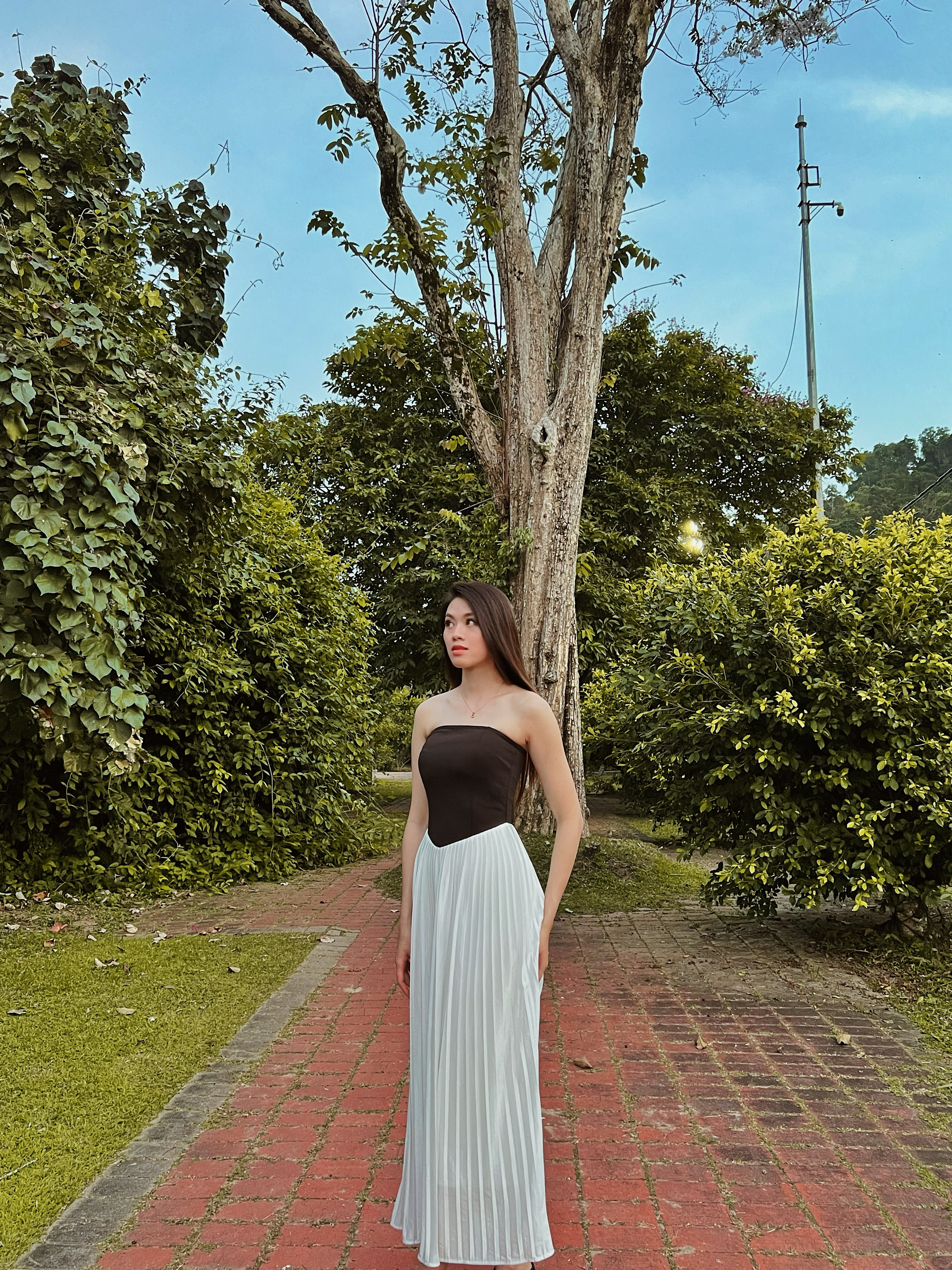 Details: This strapless maxi dress elegantly combines black and white for a timeless and versatile look. The contrast between the deep black top and crisp white bottom creates a striking visual impact, offering sophistication with a touch of modernity. The pleated detail adds a touch of texture and movement to the crisp white portion, enhancing the overall elegance. Perfect for any occasion, this dress effortlessly combines contemporary style with timeless charm, making it a wardrobe staple that stands out with its monochrome allure and graceful pleats.
