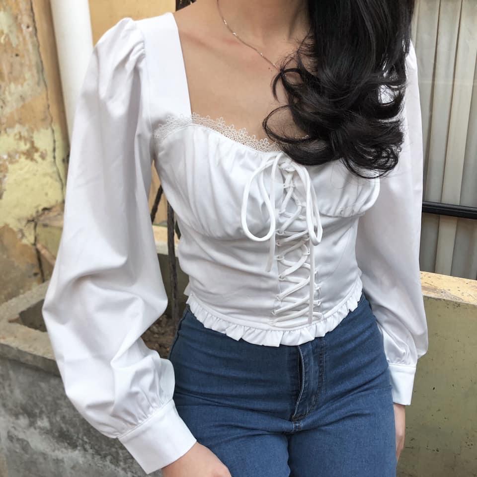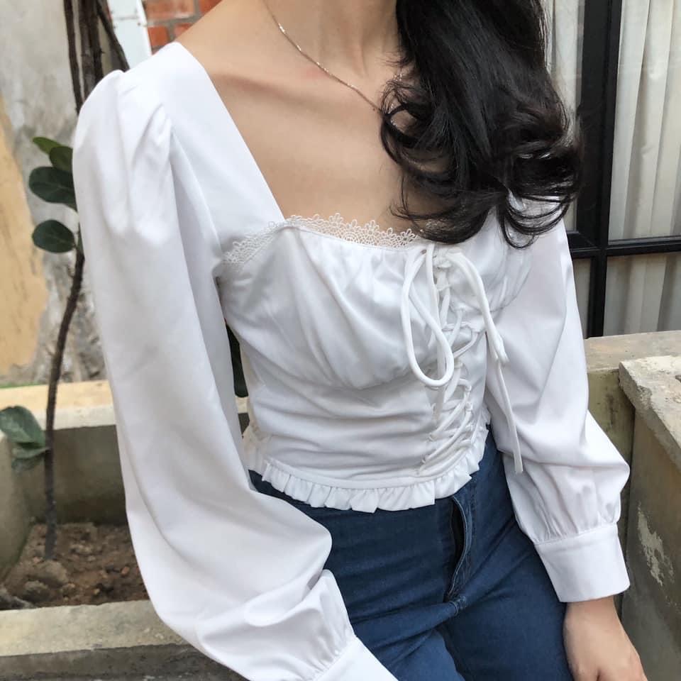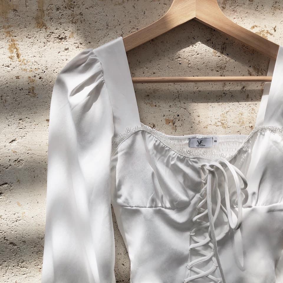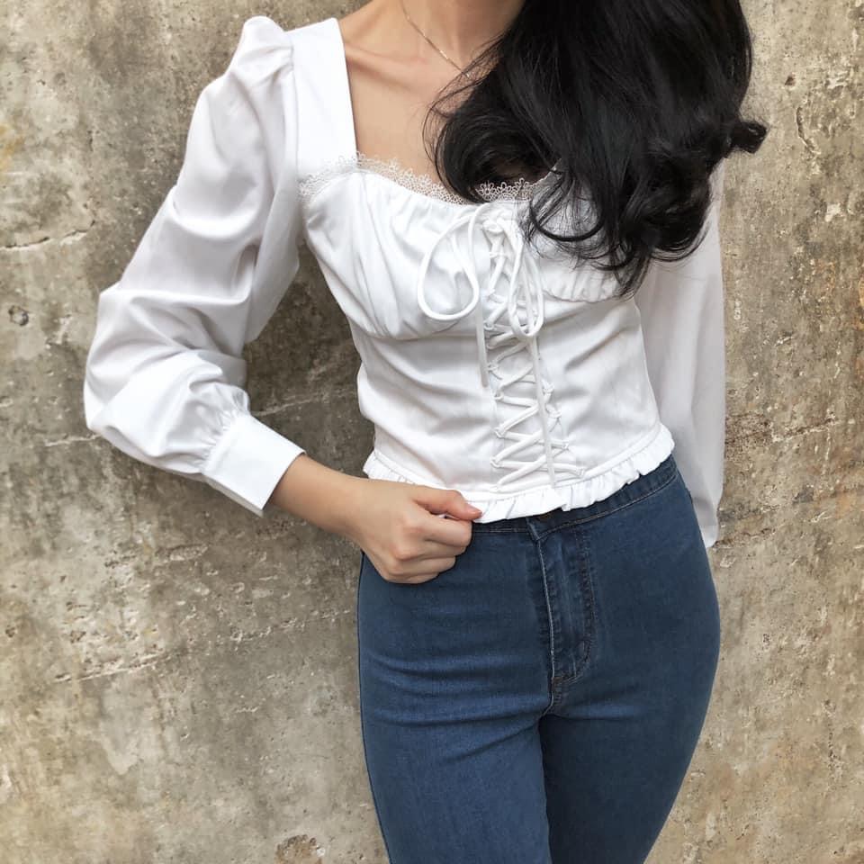 Details: The long-sleeve blouse, crafted from silky fabric, is lightweight and smooth, exuding a luxurious texture. Subtle puffed long sleeves add a touch of sweetness and elegance. The expertly designed bust area accentuates the feminine curves, shaping a delicate and graceful silhouette. The central crisscross tie design not only allows for adjustable fit and waist definition but also enhances the blouse’s uniqueness and adds a touch of style, giving it a chic and distinctive flair. Whether for everyday wear or special occasions, this blouse effortlessly combines elegance with sensuality.