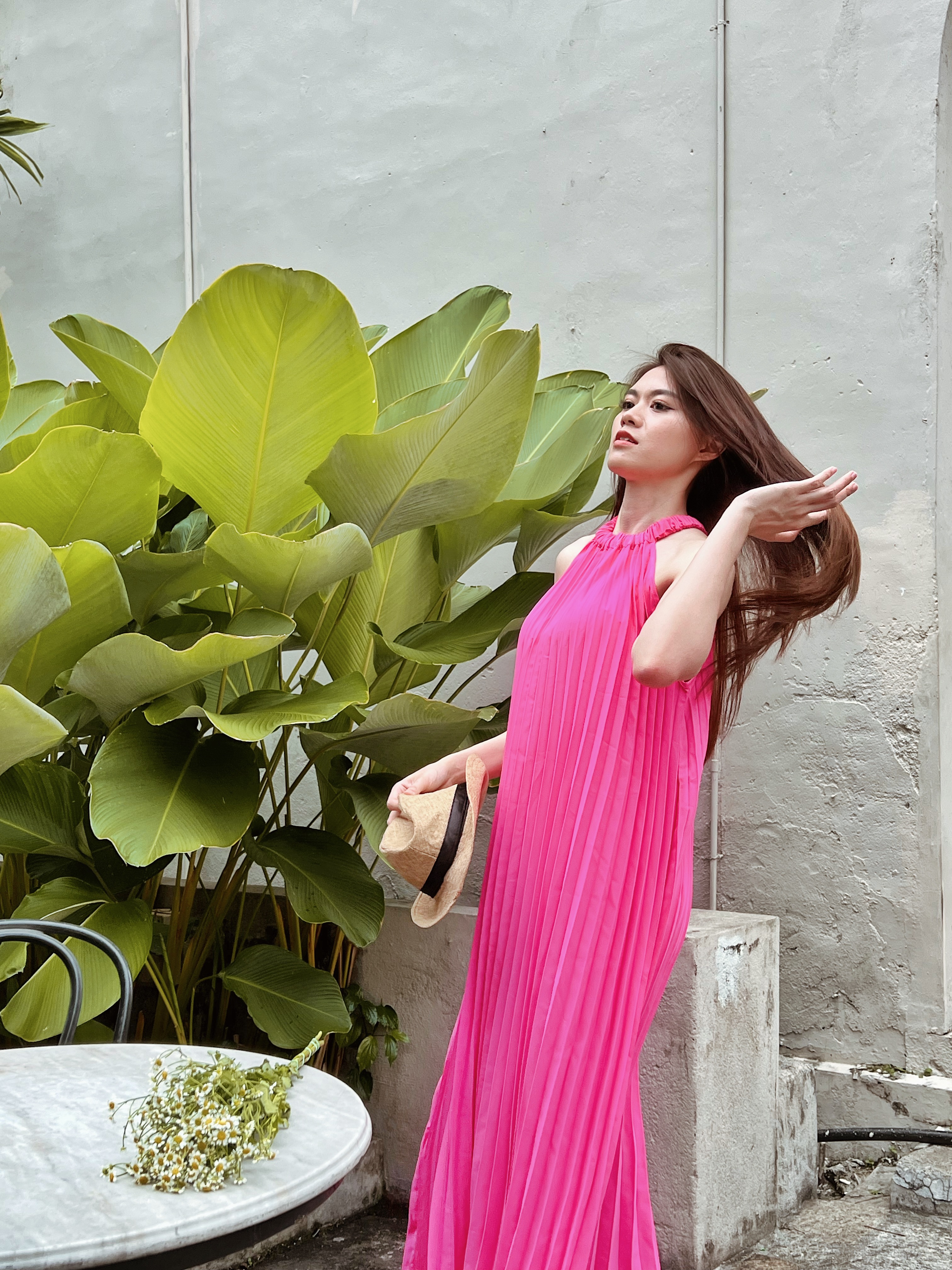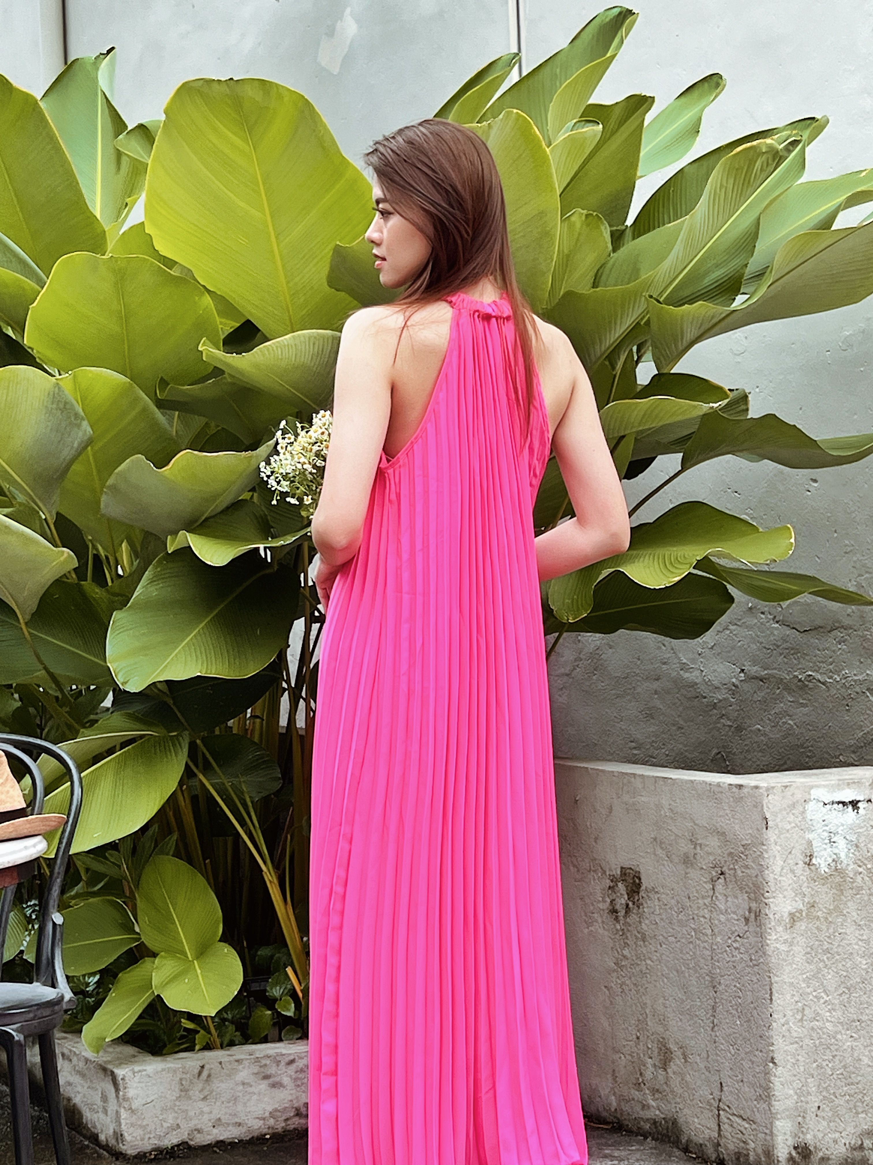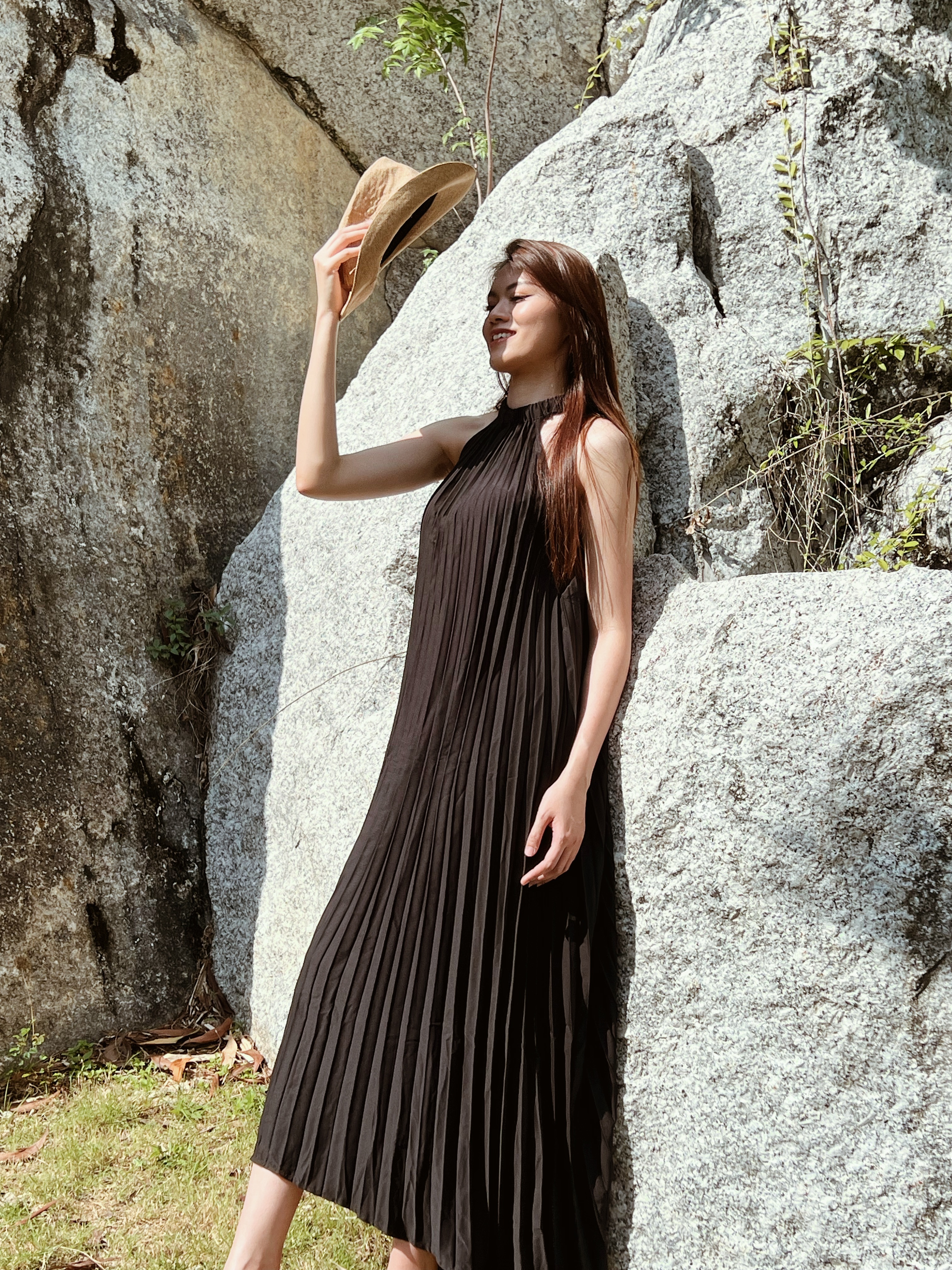 Details: Experience the exquisite beauty of the our pleated maxi dress and make a lasting impression! The intricate pleats add a touch of sophistication and elegance, while the floor-grazing length creates an illusion of height and effortlessly grace as it moves. With the features of A-line silhouette and halter neckline, it strikes the perfect balance between comfort and style, makes it a party and events collection. Style with strappy sandals for a relaxed vibe or a clutch for a polished look.
