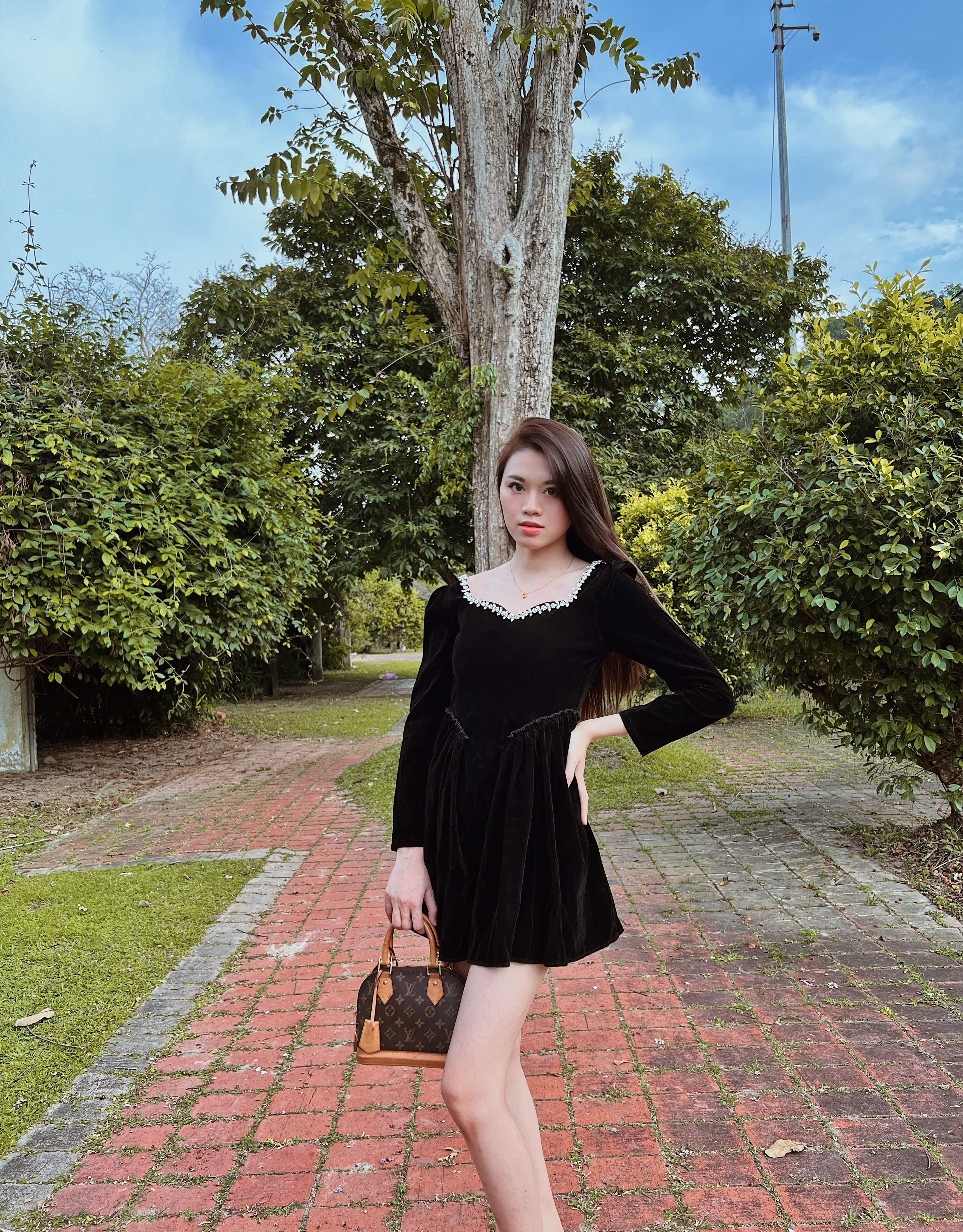 Details: Dress to dazzle in this stunning black A-line long sleeve mini dress. The plush velvet material not only feels luxurious but adds a touch of opulence to your ensemble. The focal point is the elegantly designed V-neckline, adorned with intricate crystal embellishments, capturing and reflecting light for a radiant effect. The dress effortlessly combines comfort and glamour, making it a perfect choice for any special occasion. Make a statement and exude timeless elegance with this exquisite piece.