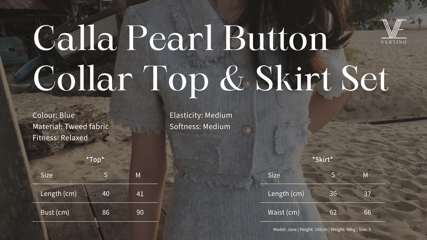Details: The light blue tweed top and skirt set exudes an air of elegance and sophistication, crafted from woven fabric for a refined texture that carries a timeless vintage charm. The square neckline is bold and sleek, highlighting the neckline while imparting a fresh and noble aura to the wearer. Delicate, single-row vintage buttons add a touch of unique retro flair, elevating the overall design with a distinctive character. The short sleeves are simple yet elegant, offering a light and comfortable feel. Fringe detailing along the edges of the top brings a playful and dynamic element, adding layers and a stylish finish to the ensemble. This set perfectly blends nobility, refinement, sweetness, and vintage charm, making it suitable for any occasion, showcasing a poised and graceful socialite style with an elegant sense of fashion.
